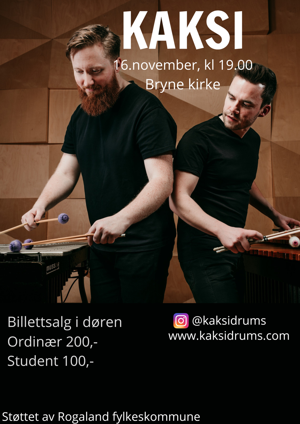 Kaksi duo fyller kyrkjerommet i Brynekyrkja med vellyd frå allslags slagverk. Akustikken i Brynekyrkja, saman med dei profesjonelle musikarane Øyvind Johansen og Audun Larsen, kjem til å gjera dette til ei vakker og stemningsfull oppleving.