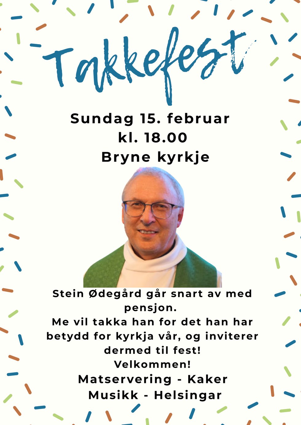 Det blir arrangert avskjedsfest for sokneprest Stein Ødegård i Bryne kyrkje.